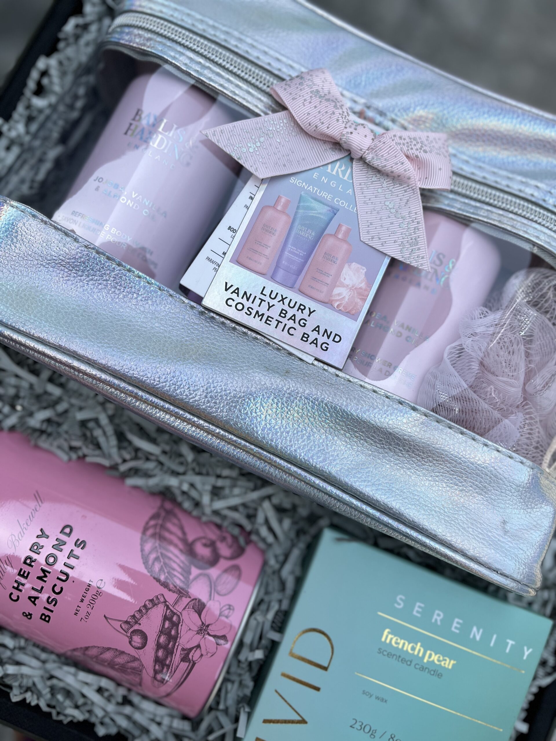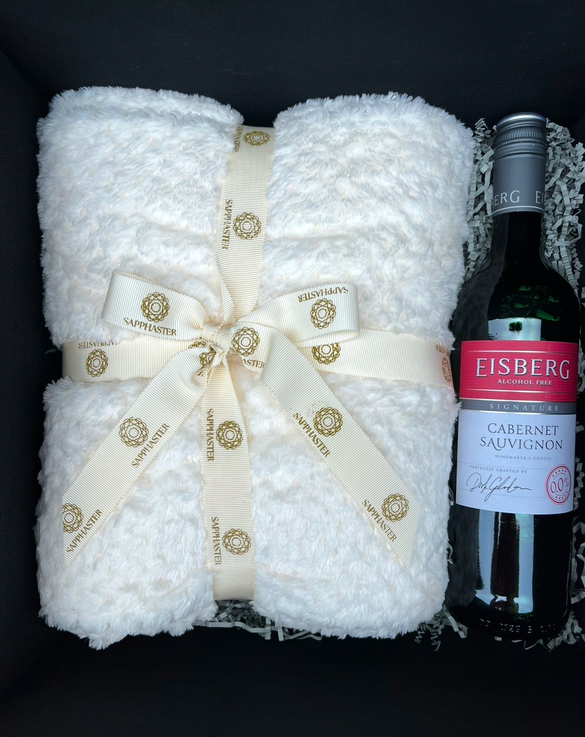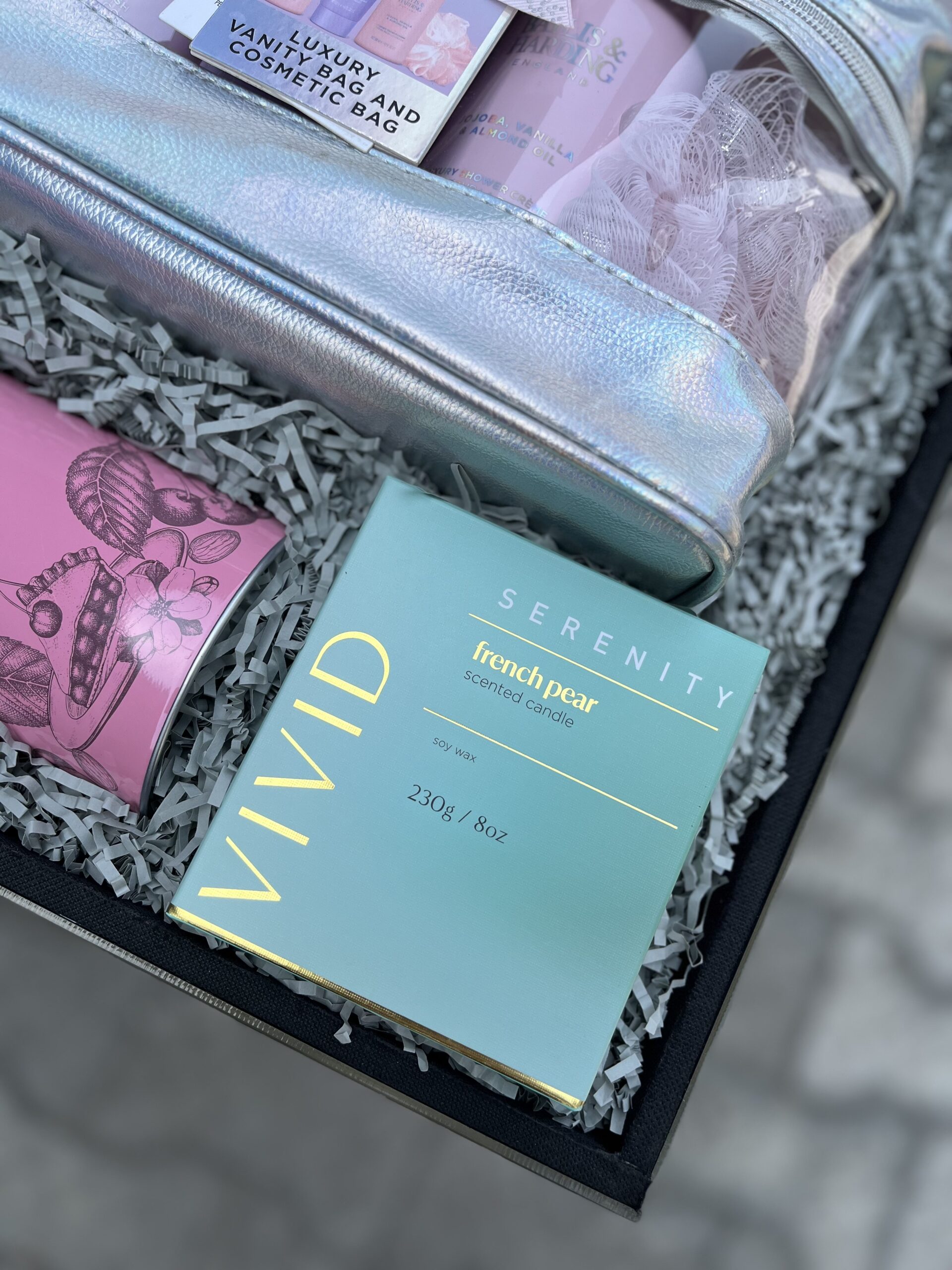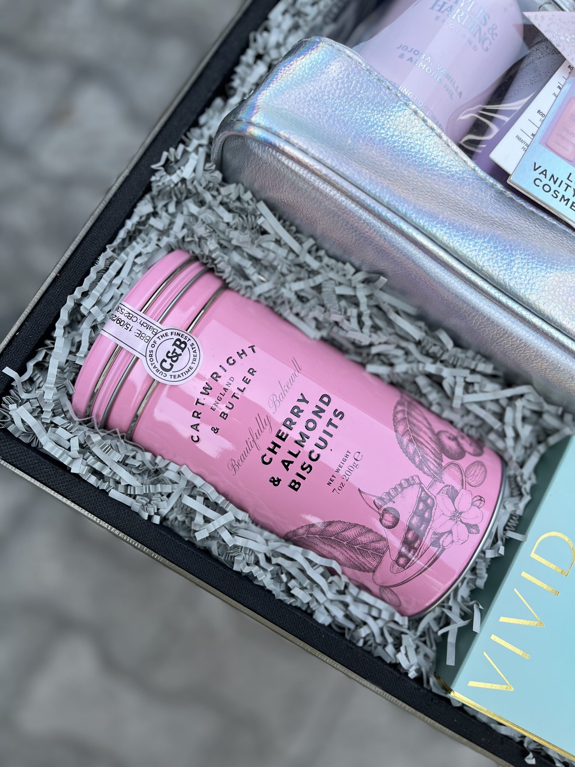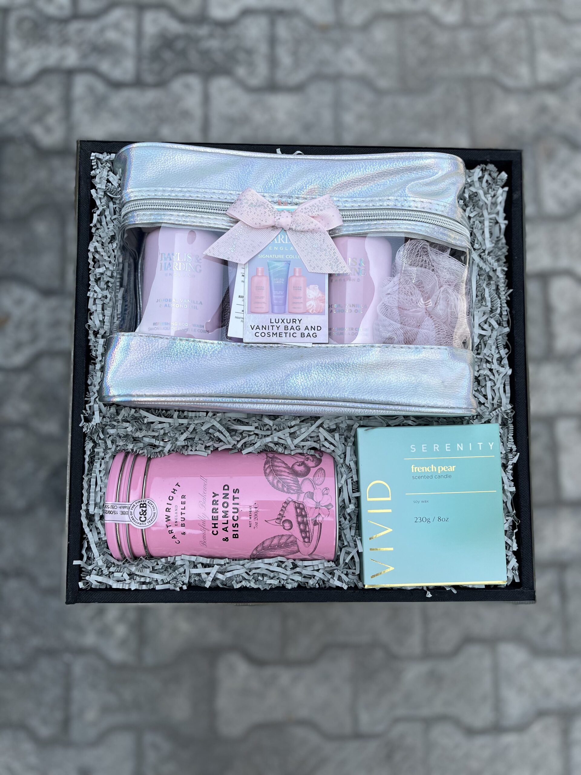 To enhance the atmosphere, the Serenity scented candle casts a soft glow and calming fragrance, transforming any space into a tranquil sanctuary. A selection of Cartwright & Butler assorted tinned cookies adds a touch of sweet indulgence, perfectly complemented by a bottle of Eisberg Sauvignon non-alcoholic wine (75cl), allowing her to savour the moment without compromise.